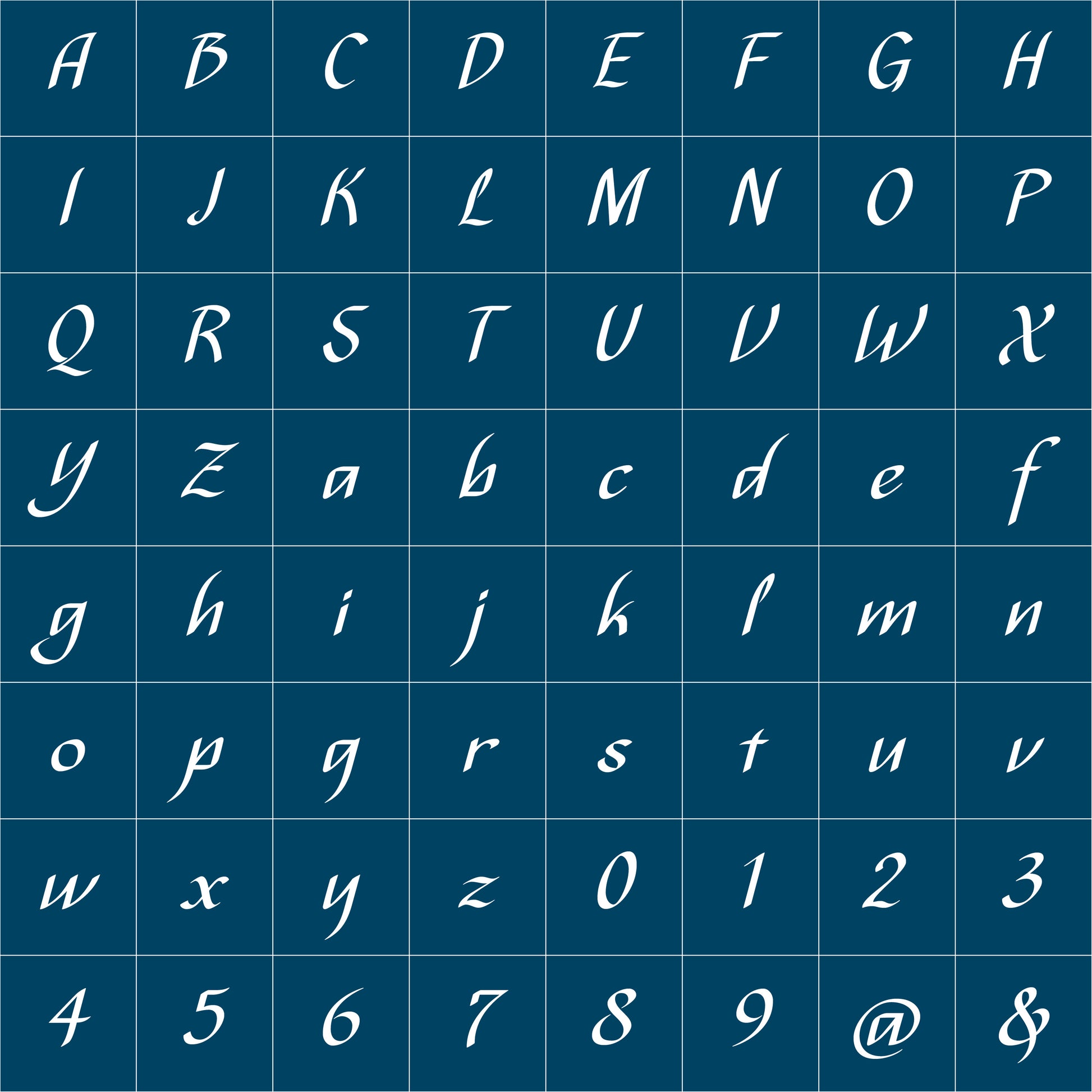 Bispo is a script typeface family made based on italic chancery calligraphy. The version PRO has 455 glyphs and 4 sets of letters. The basic set of the PRO version has a smaller uppercase glyphs that allow you to write in ALLCAPS or acronyms. When the OpenType feature “contextual alternates” is enabled, the first capital characters of the words will change to the bigger version, with more swashes, and the lowercase letters will be cycled between the three versions of each one. The OpenType feature “swash” enable the most ornamented glyphs.